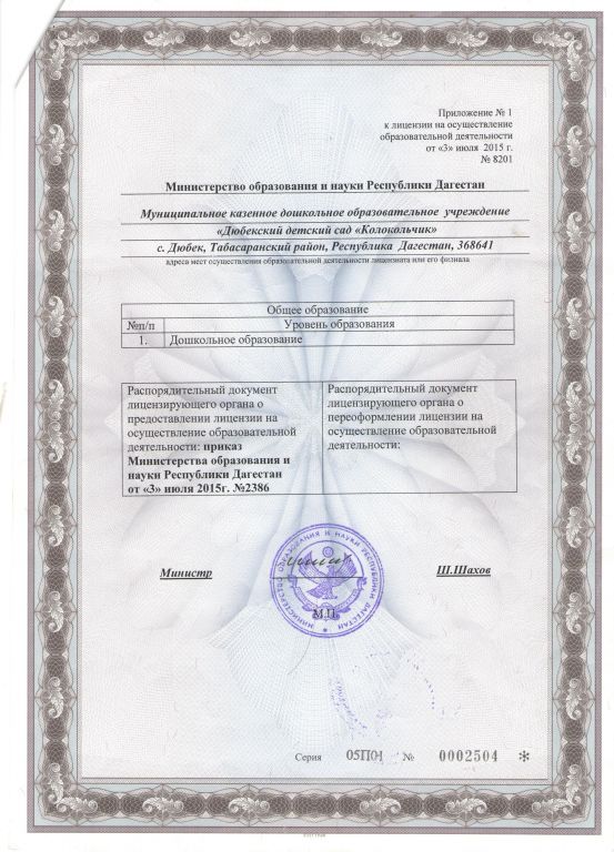 | Адрес местонахождения образовательной организации* | 368641Республика Дагестан ,Табасаранский район,с.Дюбек |